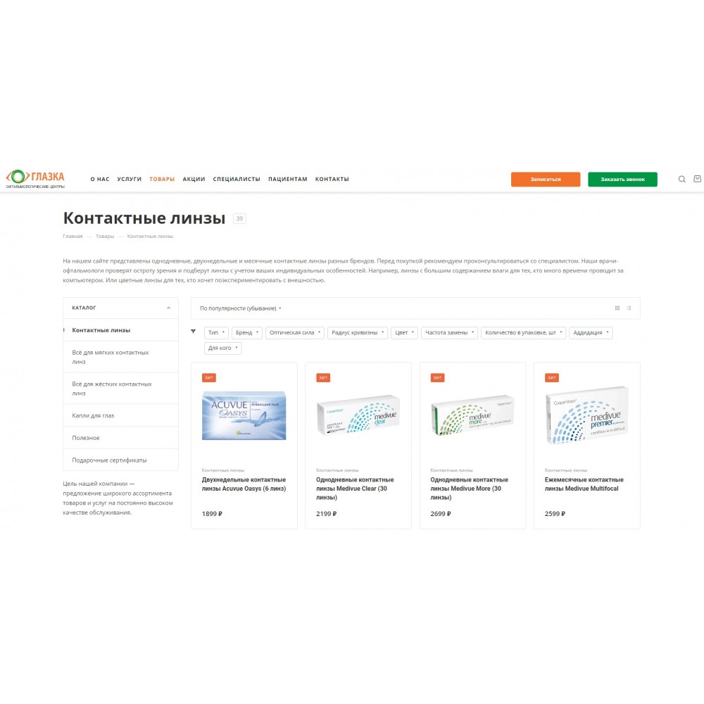 Веб-студия "Максвебсайт" выполнила работы по доработке шаблона сайта клиники офтальмологии "Глазка" (г. Новосибирск). Существующий сайт, включающий каталог статей, каталог специалистов и каталог товаров с модулем интернет-магазина, был модернизирован для повышения удобства использования, улучшения визуальной привлекательности и расширения функциональности.