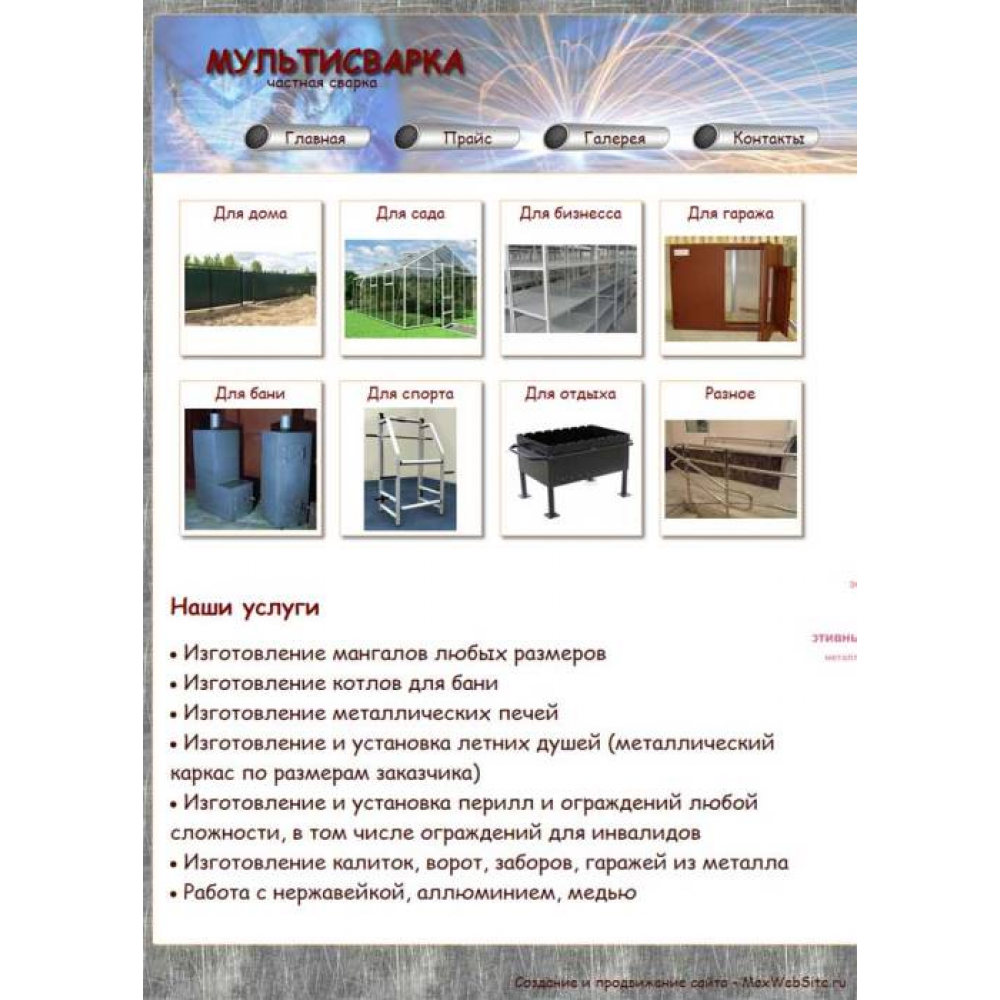 • Сайт визитка частного сварщика г.Москва